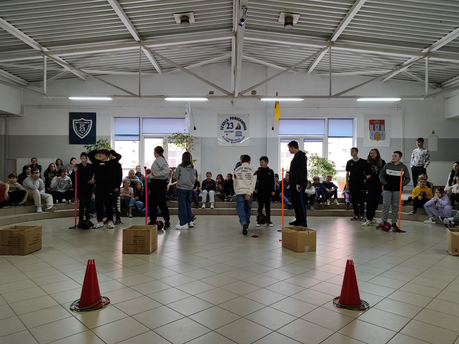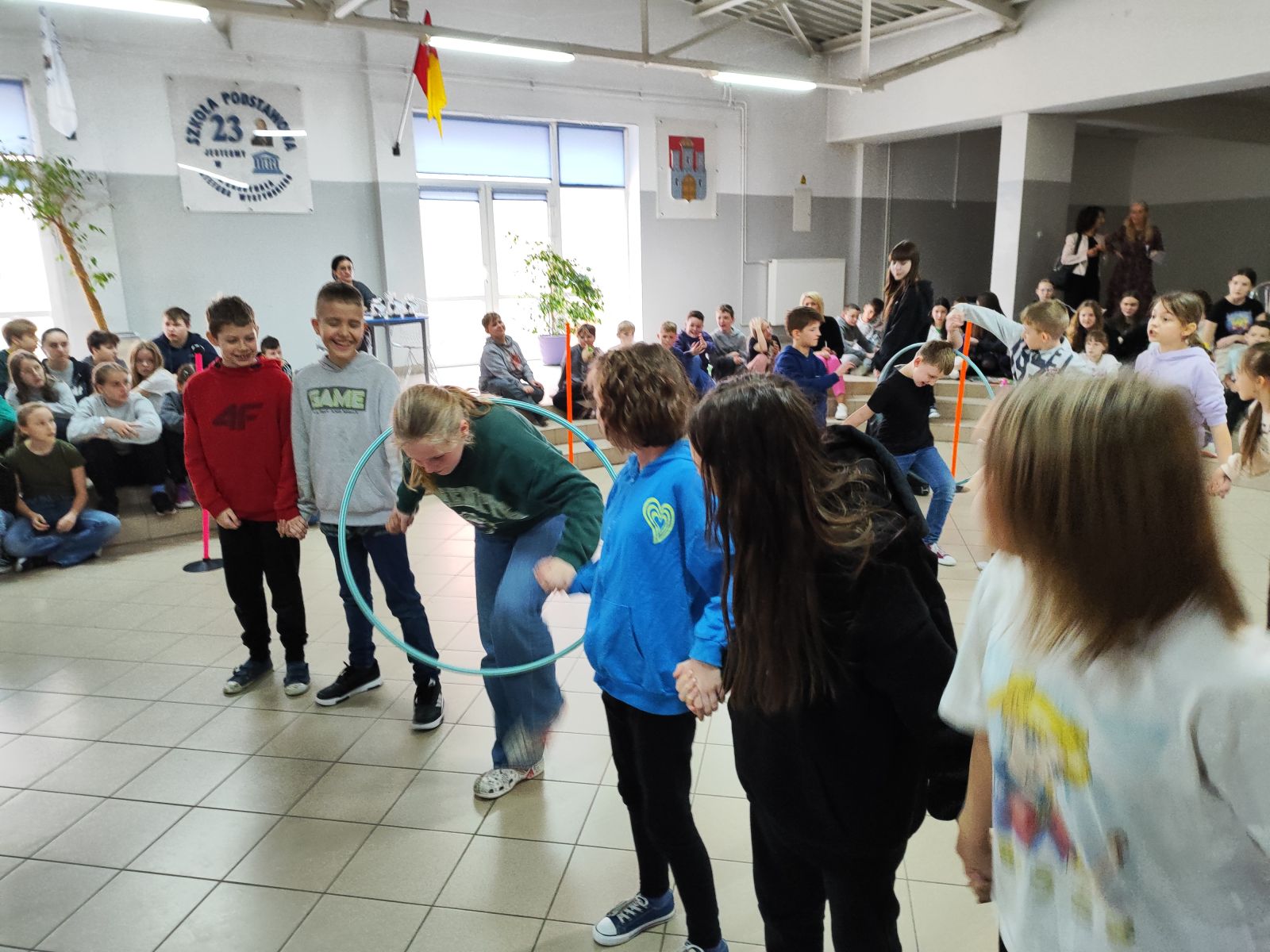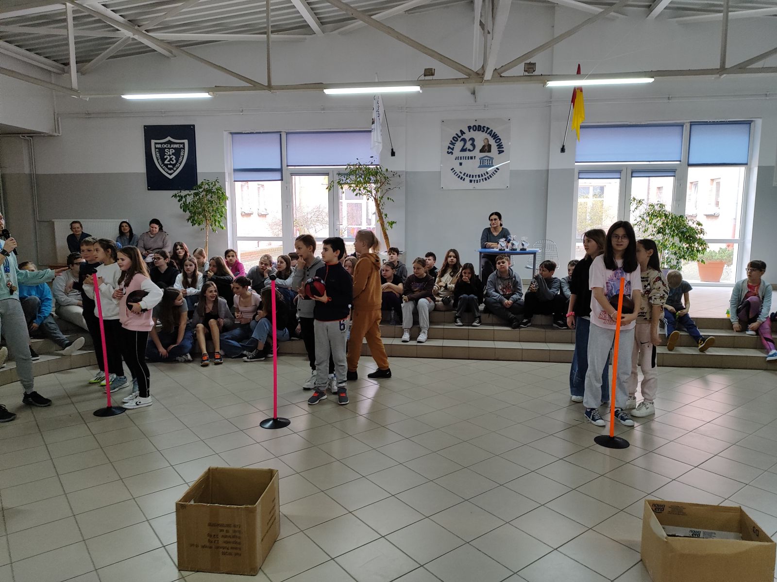 Pierwszy dzień wiosny w tym roku uczniowie Sp23 obchodzili biorąc udział w sportowych międzyklasowych potyczkach. Uczniowie klas 4-6 układali wyrazy wiosenne z liter które mieli przyczepione na plecach, przekładali hula-hop na czas oraz mieli możliwość sprawdzenia się w biegu sprawnościowym. Natomiast dla klas 7-8 odbył się międzyklasowy turniej koszykówki na sali gimnastycznej. Zmagania wszystkich klas na załączonych zdjęciach. Wszystkim zaangażowanym w przeprowadzenie Dnia Wiosny bardzo serdecznie dziękujemy. Zwycięskim klasom gratulujemy i życzymy udanego dnia wiosny.